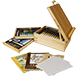 This painting set contains 12 tubes of Oil Colors, 12 Oil Pastels, Plastic Palette Knife, 3 Assorted Oil Painting Brushes, 2 28"x10" Canvas Panels, 12 tubes of Acrylic Colors, 12 Artist Pastels, 3 Assorted Acrylic Painting Brushes, Palette Knife, Hb Pencil, 12 tubes of Watercolor Paints, 12 Watercolor Pencil Pastels, 3 Assorted Watercolor Brushes, 9"x12" Watercolor Paper Pad, 9"x12" Sketch Paper Pad, Plastic Palette with 6 Wells, Plastic Knife, 2B Pencil, Pencil Sharpener, Pencil Eraser.